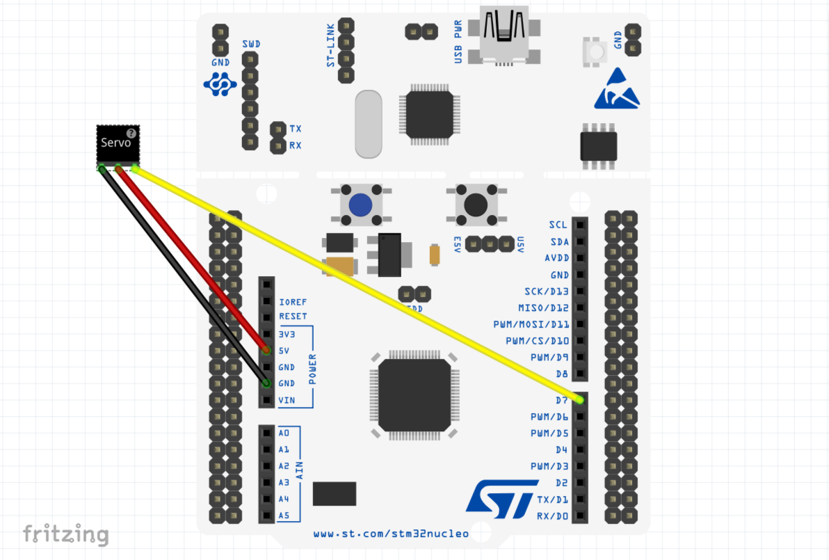サーボモーターとSTM32をジャンパー線を使ってつなぐ