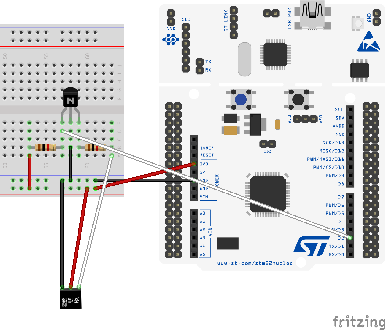 ブレットボードの図を用意したので、これと同じ回路を組んでみよう