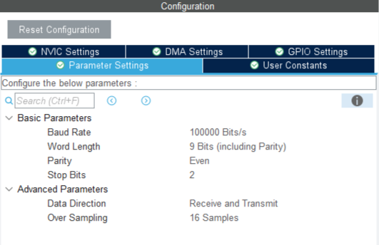 SBUSは少し特殊な通信形式であるのでUSART1の詳細設定を変更する必要がある