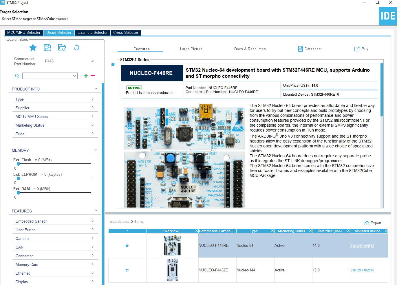 - NUCLEO-F446REを選択し、右下のnextのボタンを押そう