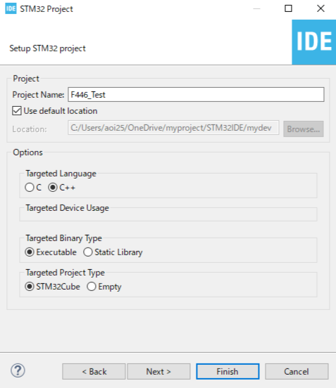 - Project Nameにプロジェクト名を入力して、Targeted LanguageをC++にしよう