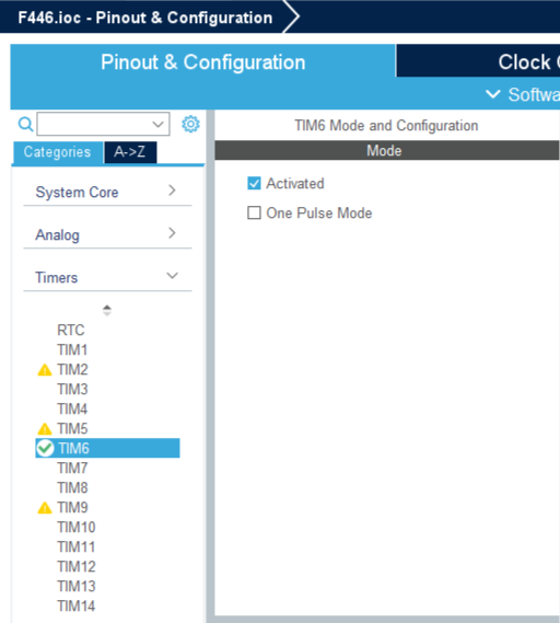 TIM6はピンがないので、図のように選んで有効化してみよう